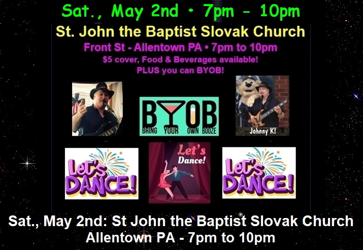 Sat., Sep. 5th: St John the Baptist Slovak Church, Allentown PA - 7pm to 10pm